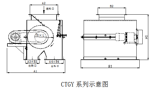 四、CTGY系列箱體滾筒式除鐵器(永磁磁輥)主要技術參數、外形尺寸