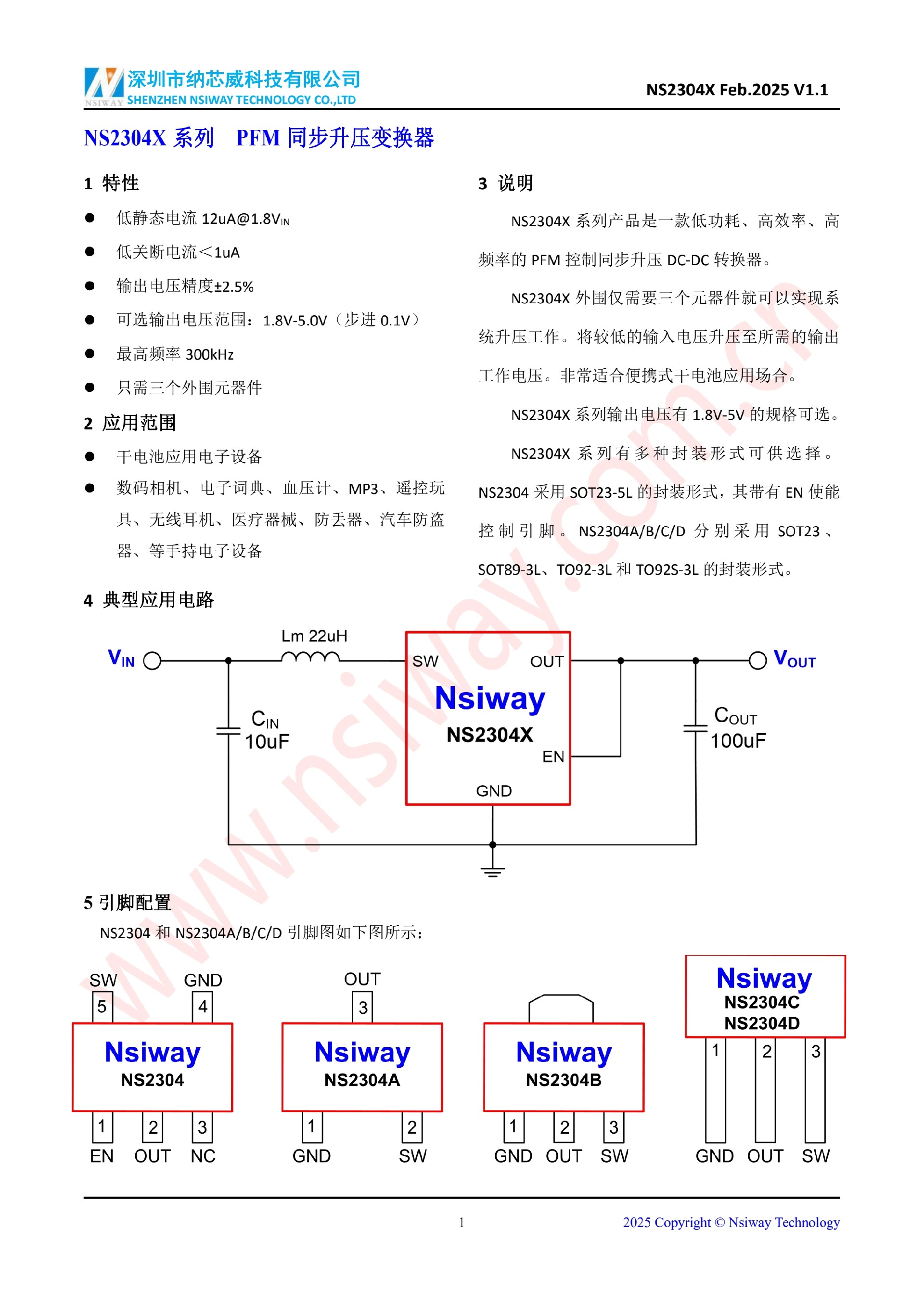 NS2304X系列 PFM同步升壓變換器